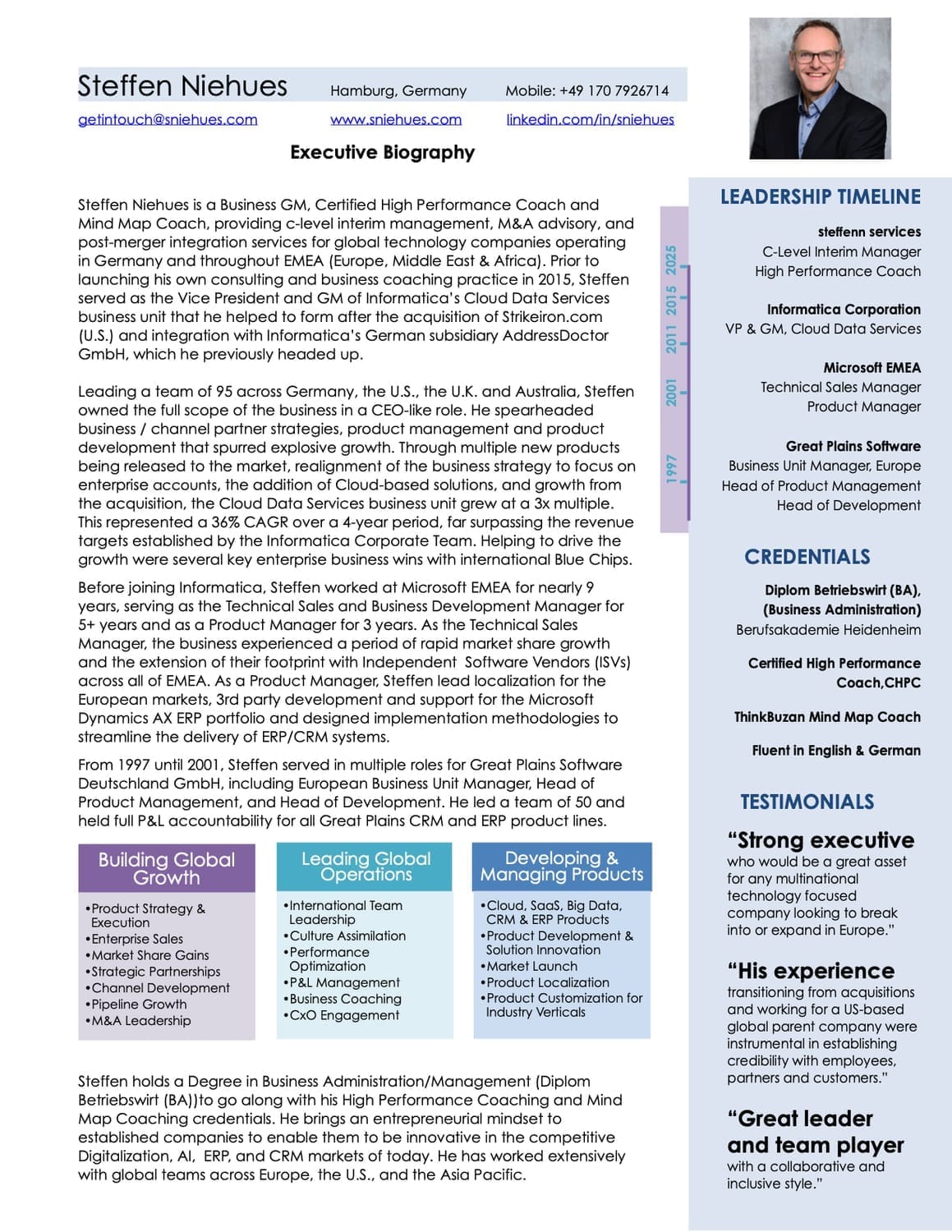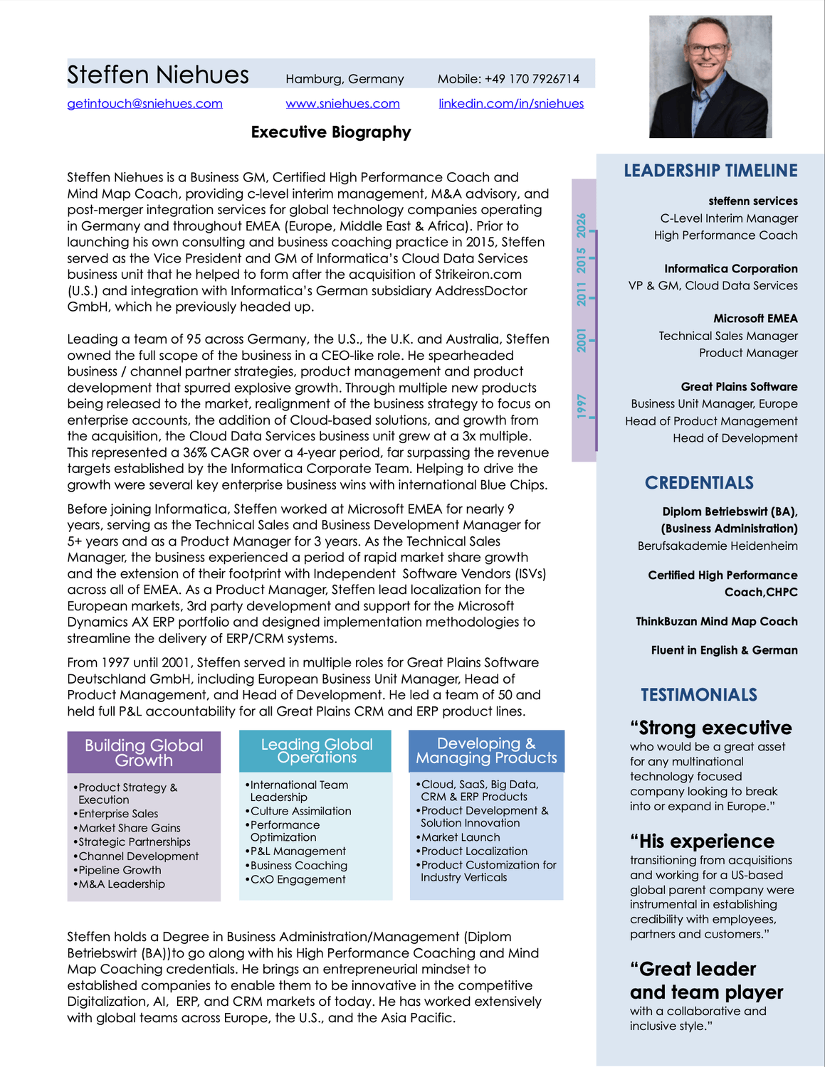 This is my Executive Biography. I’m offering the winning combination of proven Leadership for Digital Business and High Performance Coaching. As a certified High Performance Coach, I’m helping teams and Executives in getting to their next level.